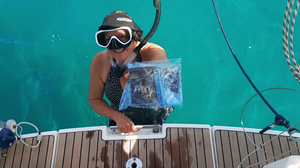 I double-bagged his postcard in ziplock bags and, sure I had a watertight package, I swam over to Acheron. Jim was chuffed that I’d delivered his card and I was delighted to be able to have a little fun creating a segment for this week’s video! It felt very James Bond-ish!